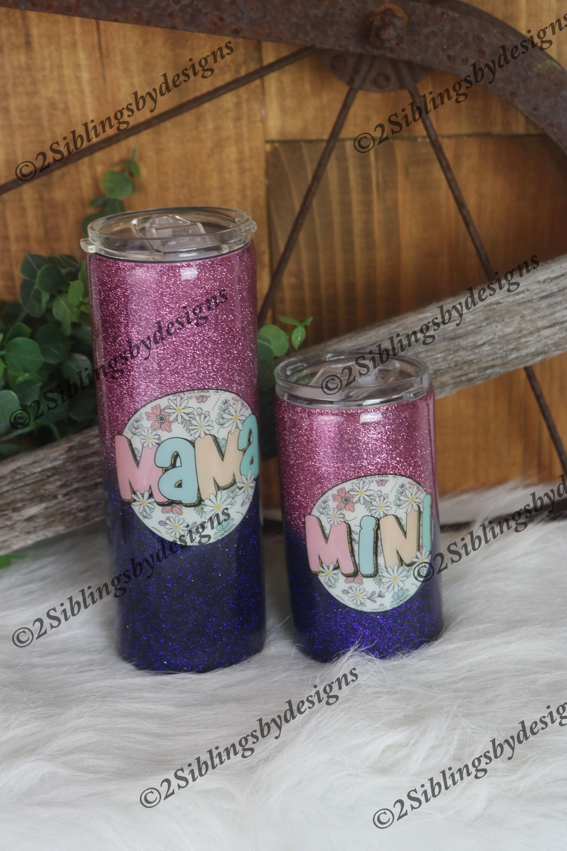 Double the sparkle, double the fun! This adorable tumbler duo is perfect for moms and their little ones who love to match in style. Featuring a glittery purple-to-pink ombré design with playful floral accents, one cup proudly says “MAMA” while the other shines with “MINI.” 🌸🌈Crafted to keep drinks hot or cold, these tumblers are not just pretty—they’re practical too! Perfect for coffee, tea, or water on the go, and juice or milk for your little mini-me.A thoughtful gift for Mother’s Day, birthdays, or just because—because twinning with your little one never goes out of style! 👩👧✨